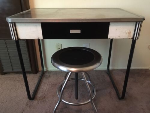 Title (ebay affiliate link): All Metal Art Deco Desk or Kitchen Table with Stool