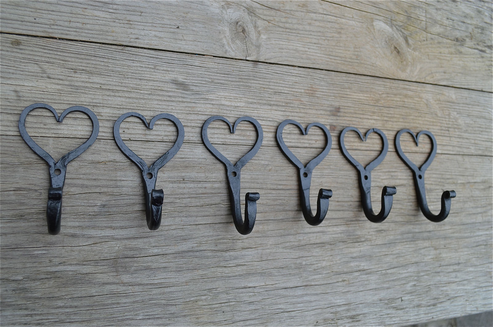 Title (ebay affiliate link): 6 hand wrought iron Shaker heart hooks folk art wall hanger door hook LHH1