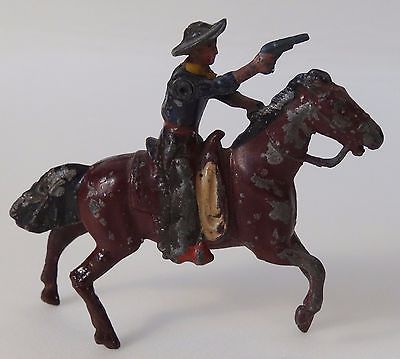 Vintage Britains Ltd Lead Toy Western Cowboy on Horse with Pistol and Swing Arm