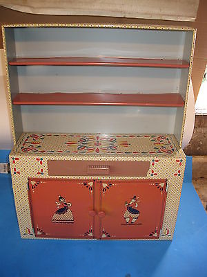 vintage childs tin toy ideal kitchen cabinet cupboard doll miniature metal