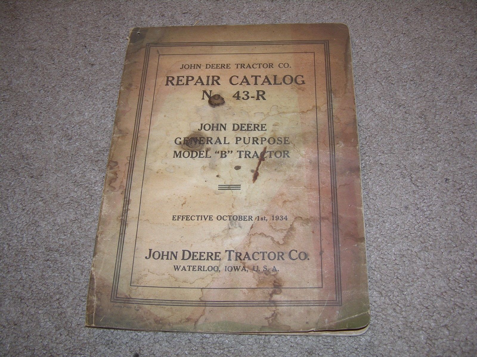 1934 John Deere Repair Catalog Model B Tractor 43-R