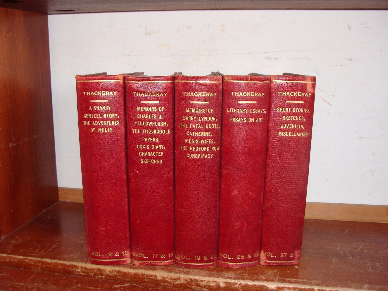 Title (ebay affiliate link): Lot of 5 WORKS OF WILLIAM MAKEPEACE THACKERAY Leather Book Set DECORATIVE DECOR