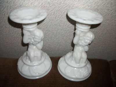Imperial Glass Milk Glass VinElf 7 1/4" Candlesticks