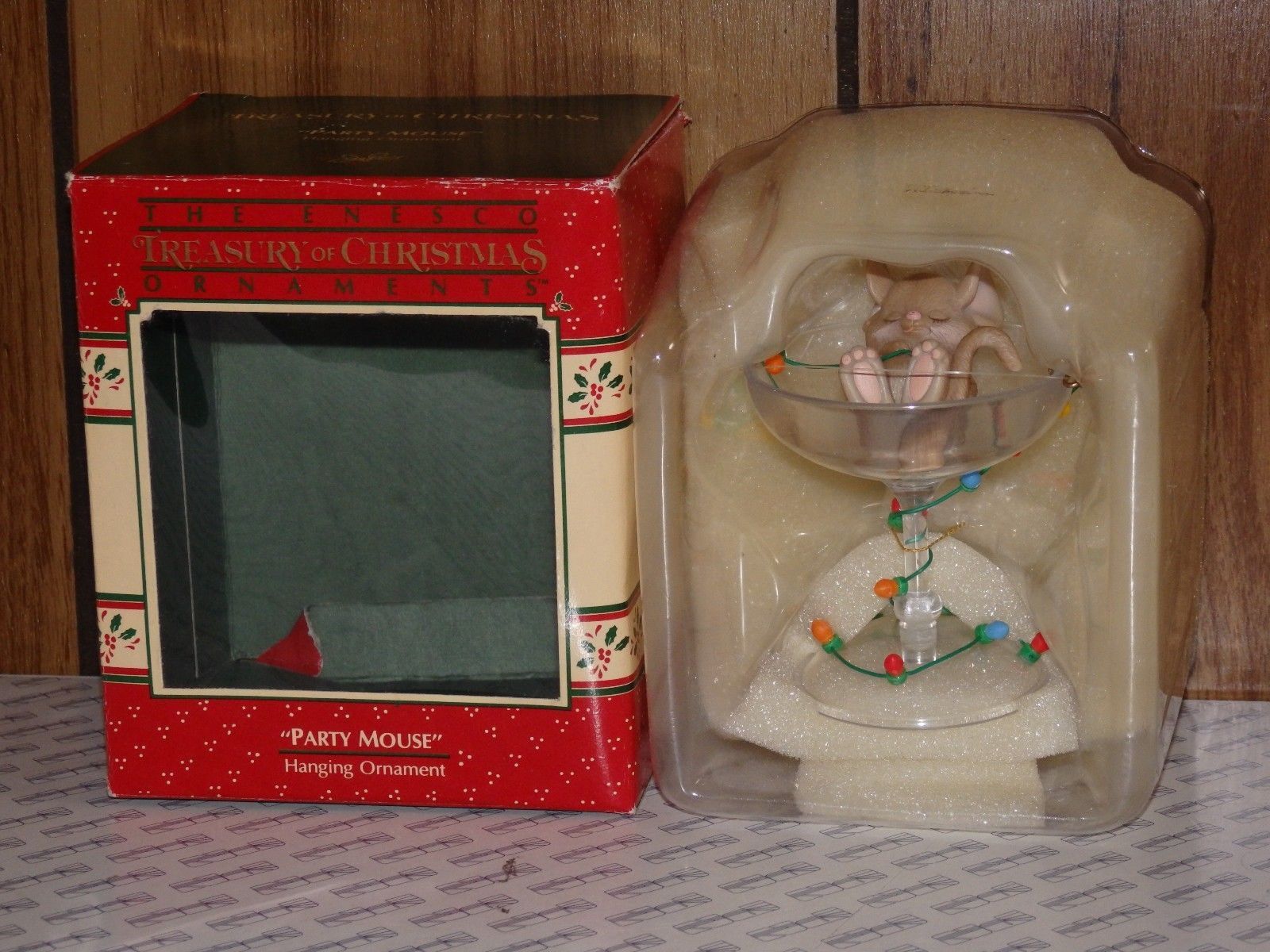 Title (ebay affiliate link): 1988 ENESCO Party Mouse CHRISTMAS HANGING ORNAMENT champagne glass lights W/BOX