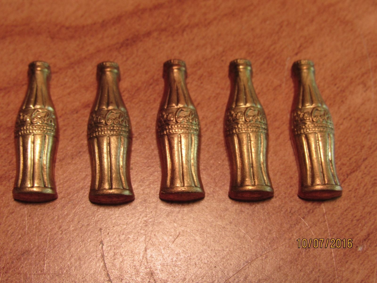 Title (ebay affiliate link): BRASS COCA COLA BOTTLES - SET OF 5 MINIATURE BOTTLES