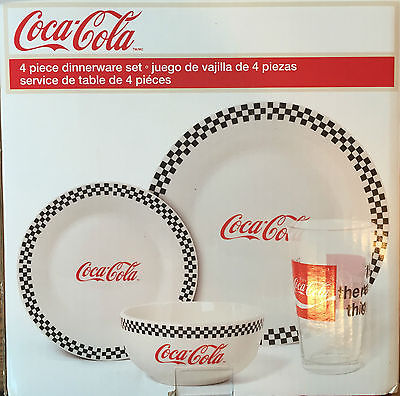 Coca-Cola 4 piece dinnerware set 1 each bowl, tumbler, dinner & dessert plate