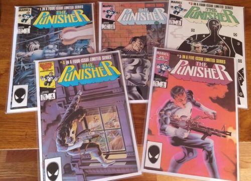 Title (ebay affiliate link): THE PUNISHER #1(9.0) 2 (9.2) 3 (9.0)4 (9.0) 5 (9.0) (Complete Limited) NM-, 1985