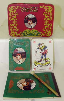 COCA COLA- TIN AND PLAYING CARD SET-NEW