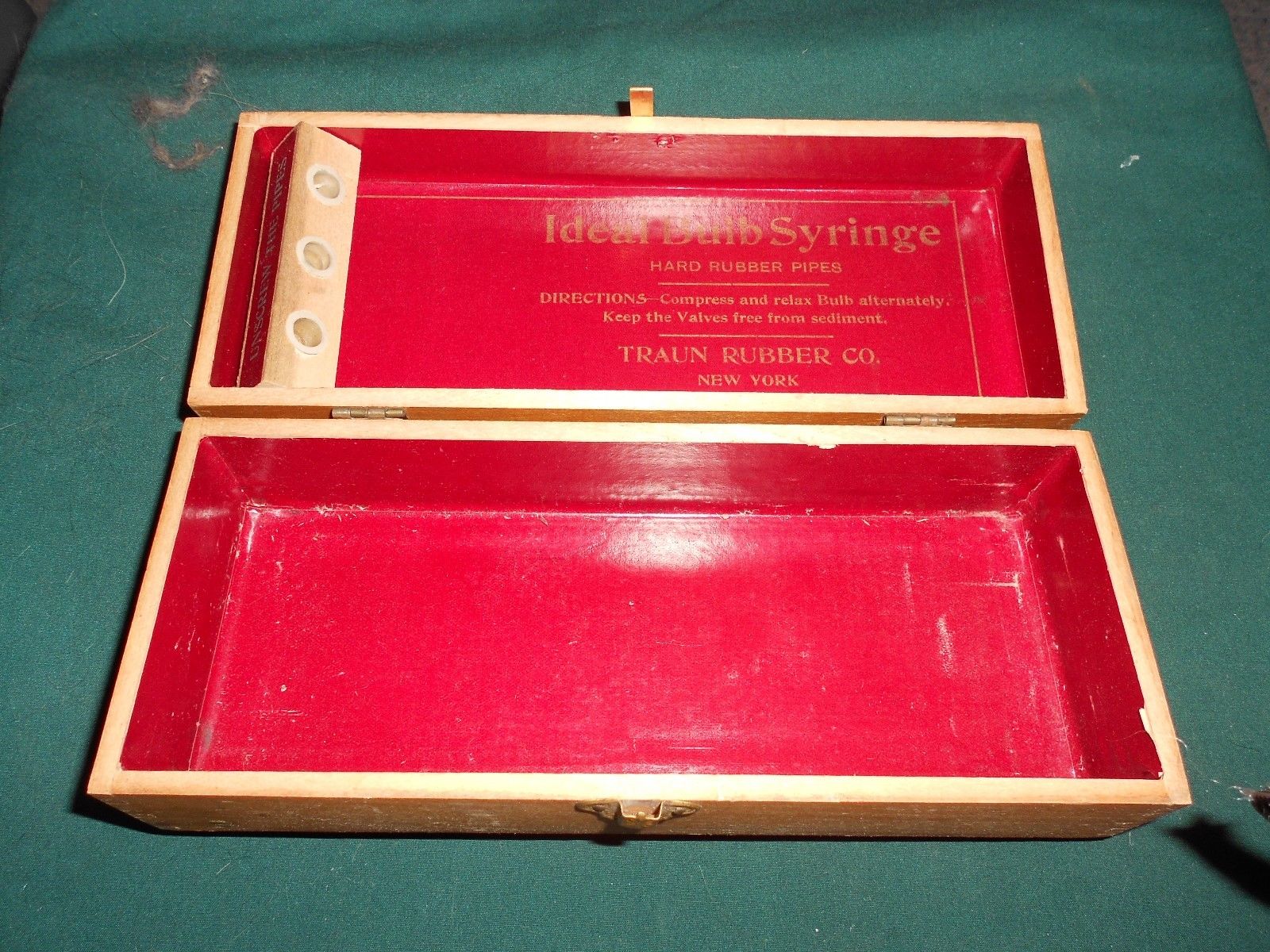 Antique Medical Ideal Bulb Syringe Traun Rubber Co Wood Box Rare