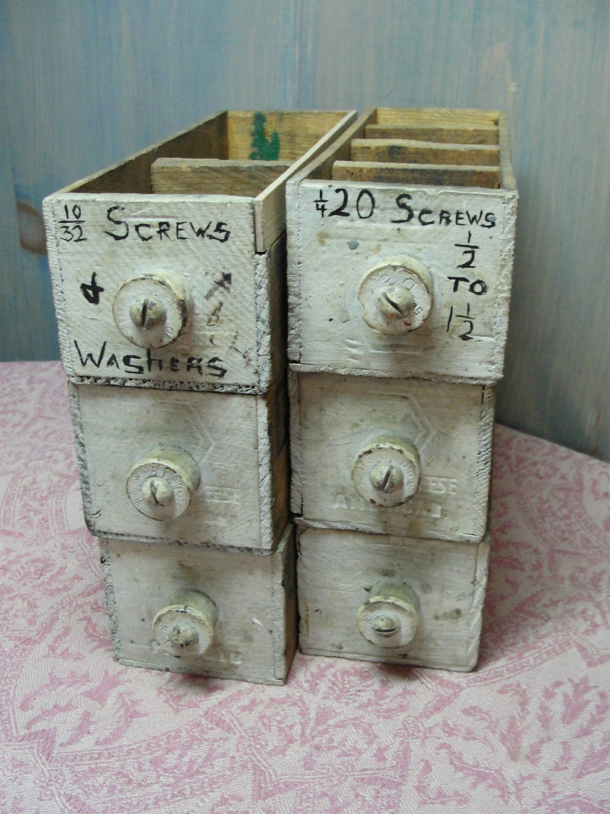 Title (ebay affiliate link): 6 Vintage Kraft American & Pimento Cheese Wood Box Drawers with Spool Handles