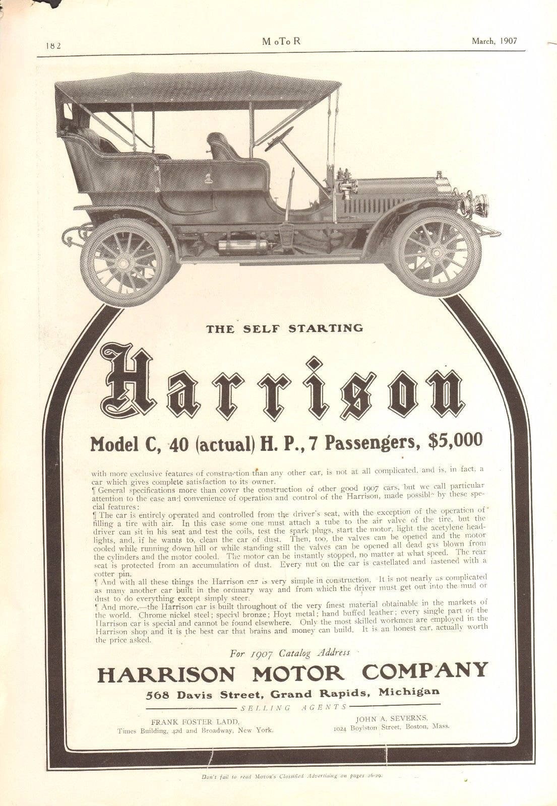 Title (ebay affiliate link): 1907 HARRISON / B.L.M. 2 SIDED CAR ORIG VINTAGE AD