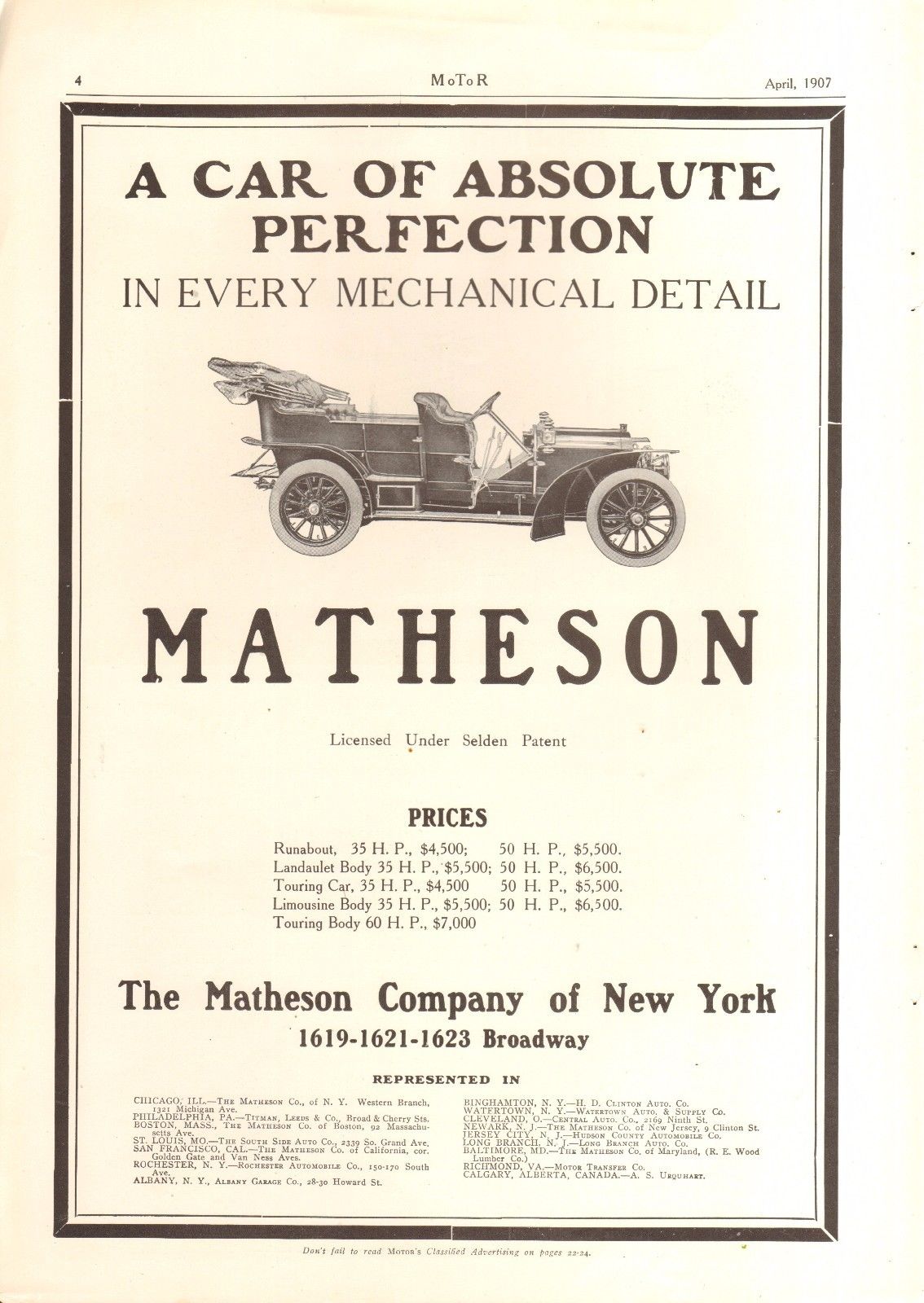 1907 MATHESON/ PIERCE ARROW 2 SIDED CAR ORIG VINTAGE AD