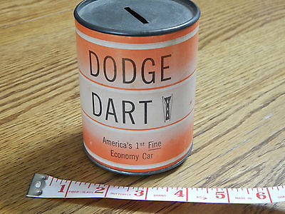 VINTAGE RARE 1960S DODGE DART BARREL STYLE SAVINGS BANK 4" TALL, 3" WIDE