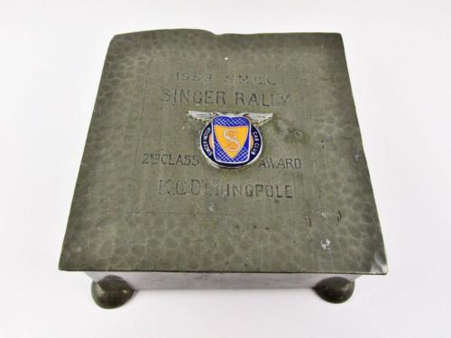 ANTIQUE 1939 SMCC SINGER RALLY 2ND CLASS AUTO RACE AWARD ENGLISH PEWTER BOX