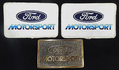 Title (ebay affiliate link): Vtg. Ford Motorsport Solid Brass Belt Buckle Made USA & Two Embroidered Patches