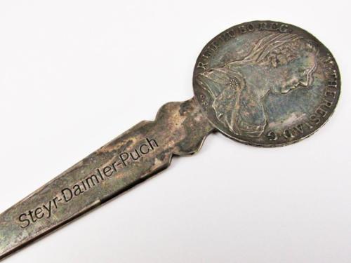 ANTIQUE STEYR-DAIMLER-PUCH AUSTRIAN AUTO ADVERTISING 800 SILVER LETTER OPENER