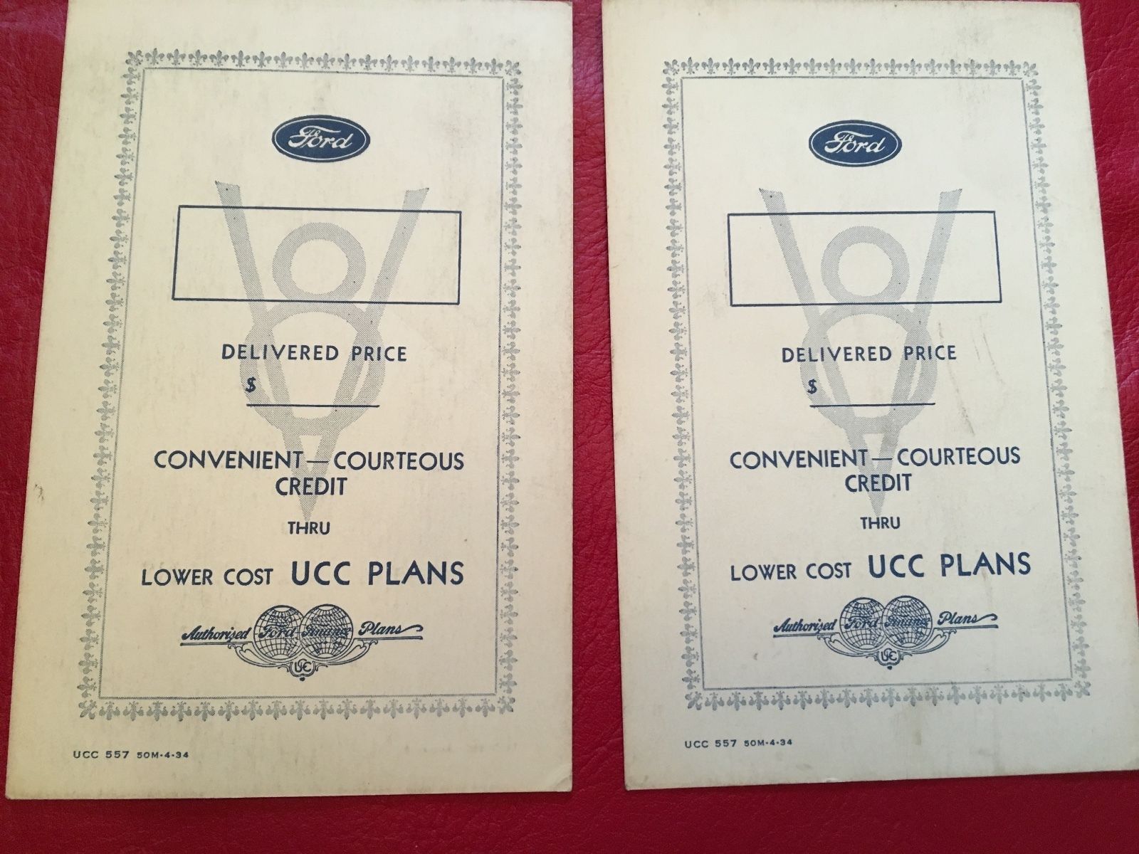 1932 Ford V8 1934 Ford V8 Hang tag insert - Dealer price tags.