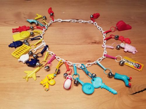 Title (ebay affiliate link): 1980'S VINTAGE BELL CLIP PLASTIC CHARM NECKLACE WITH 20 RETRO 80'S CHARMS!!