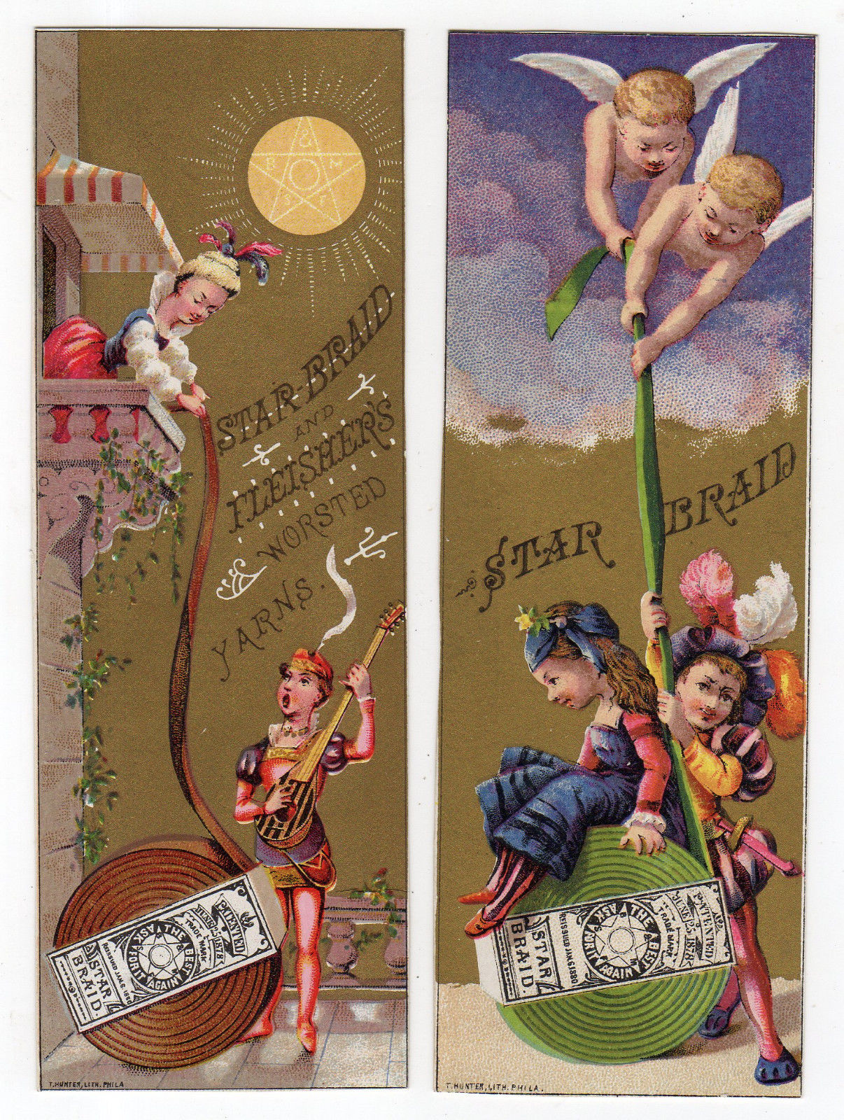 Star Braid & Fleisher's Worsted Yarns Tradecards, Lady On Balcony, Little Angels