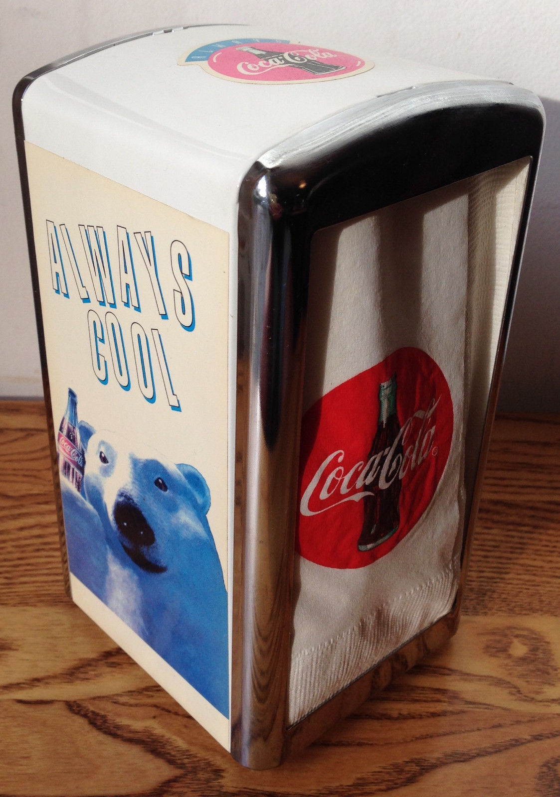 Title (ebay affiliate link): Vintage 1994 Coca Cola Polar Bear Metal Napkin Dispenser with Refills 7-1/2"