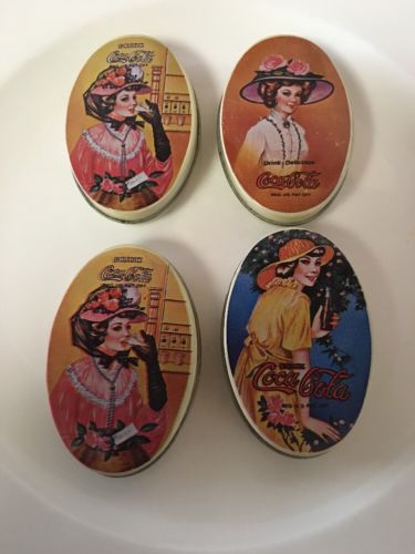Title (ebay affiliate link): LOT OF FOUR 4 SMALL COCA COLA OVAL METAL TINS
