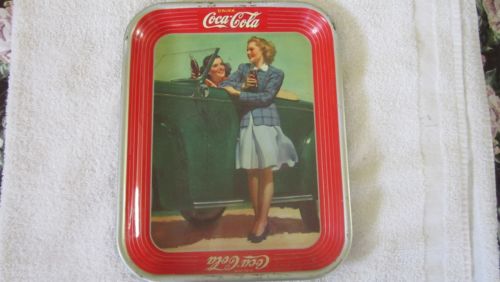 Title (ebay affiliate link): Beautiful Vintage "1942" Coca-Cola Coke Tin Serving Tray 2 Girls & Car CLEAN