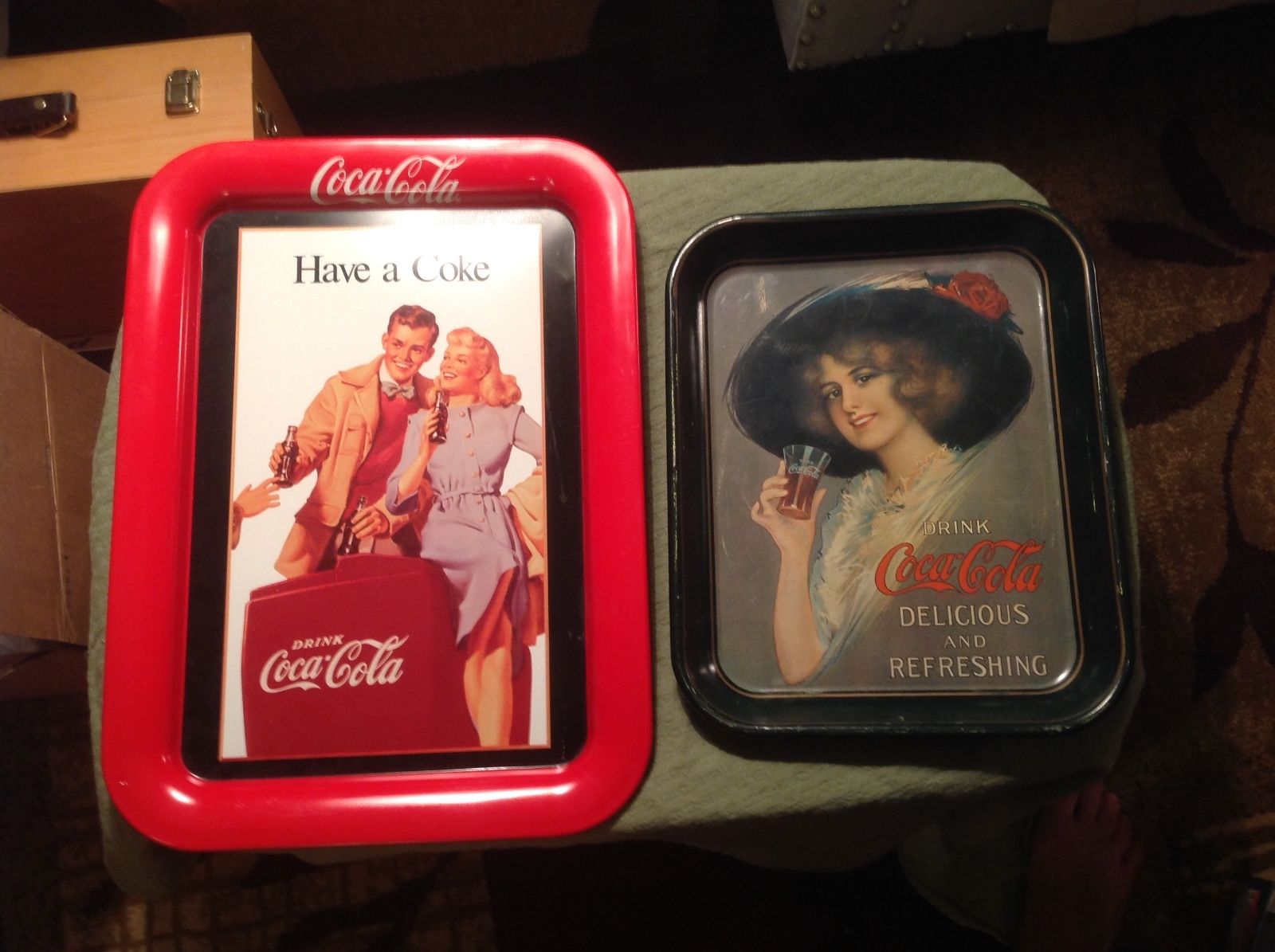 Title (ebay affiliate link): Lot Of 2 Vintage COCA COLA Serving Trays - 1912 Hamilton King Girl/Have a Coke