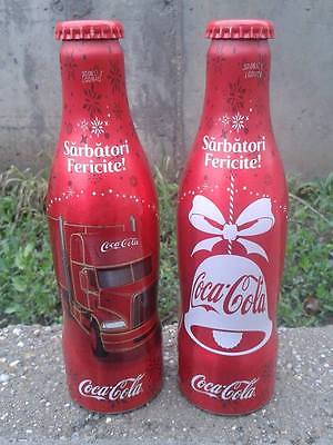 Coca Cola Christmas 2016 Romanian aluminium bottles set of 2 Limited Edition