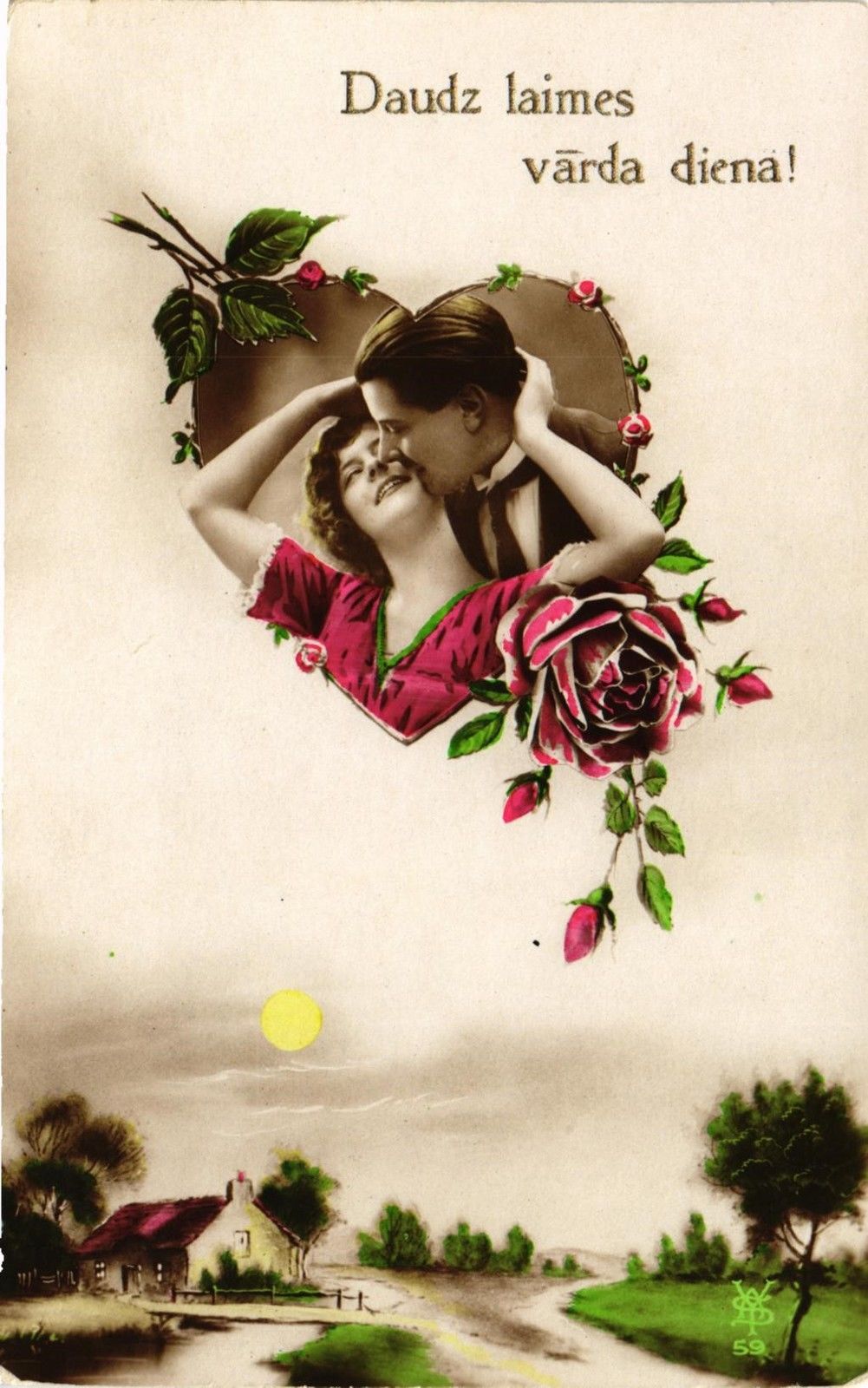 Title (ebay affiliate link): DR JIM STAMPS ROMANTIC HAPPY NAME DAY REAL PHOTO RPPC LATVIA POSTCARD