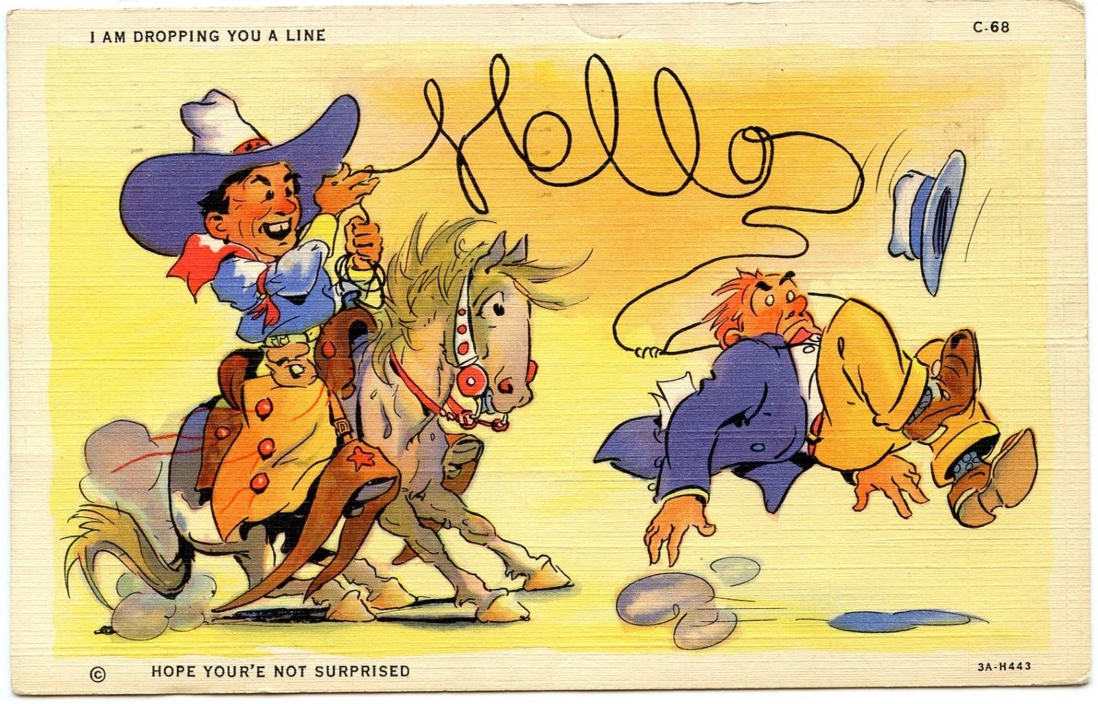 Title (ebay affiliate link): B5090 Dropping You a Line Cowboy Ray Walters 1933 Teich Linen PC C T Line Comic