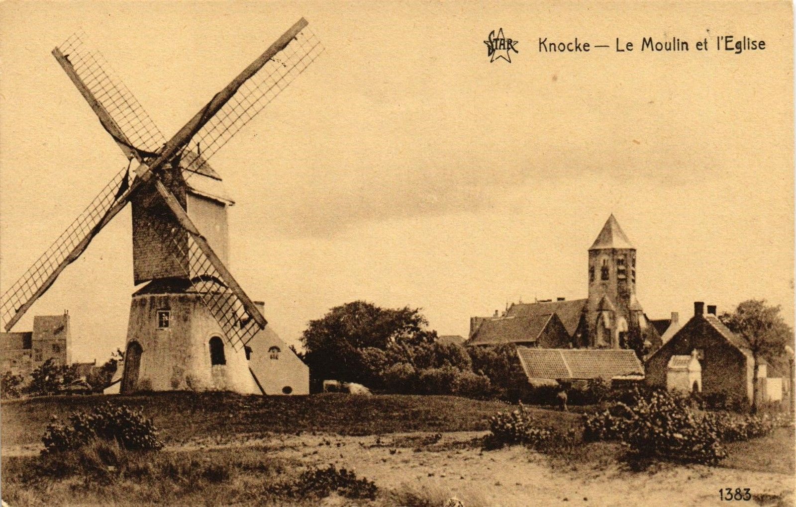 DR JIM STAMPS THE MILL AND THE CHURCH KNOCKE BELGIUM POSTCARD
