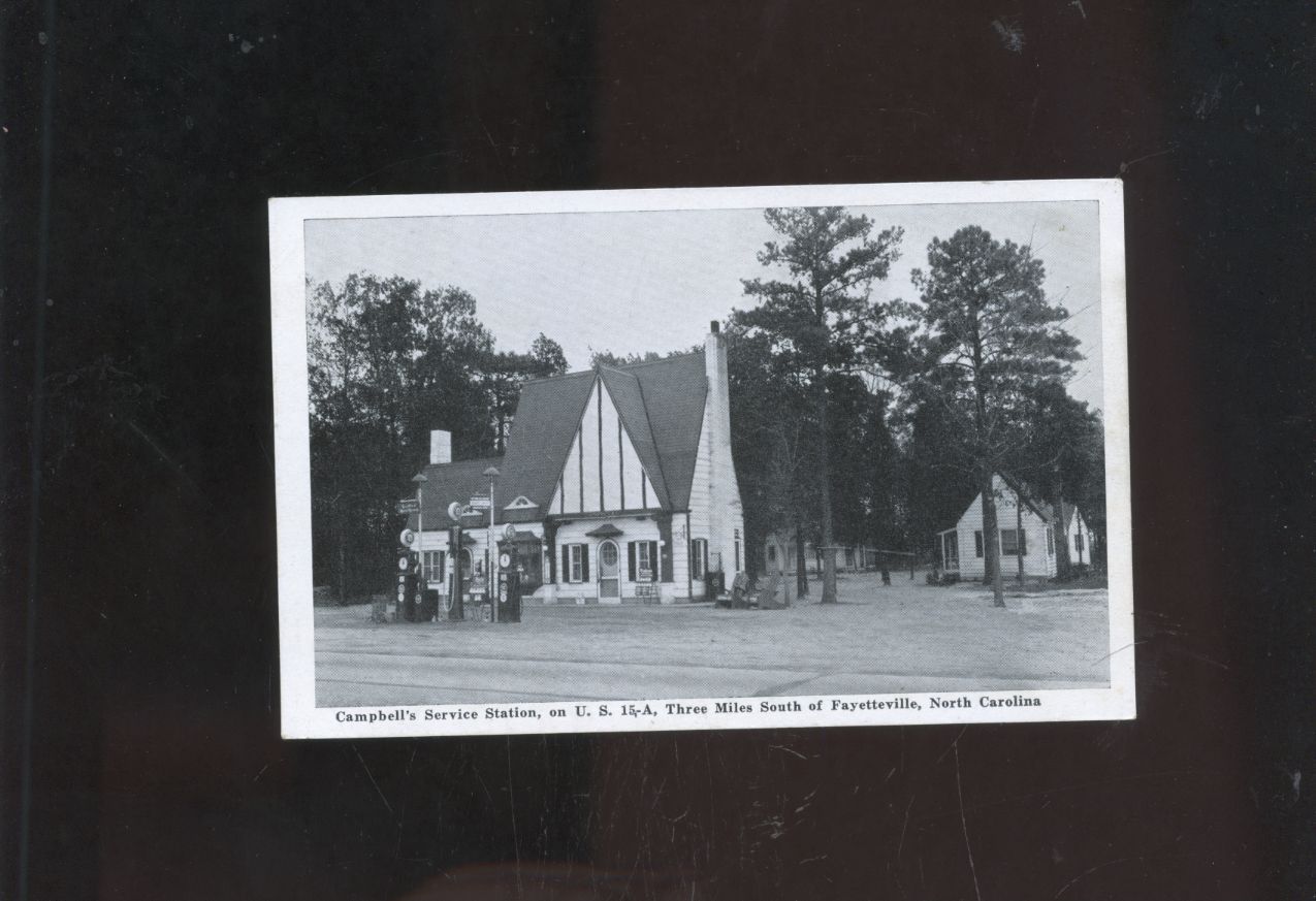 old Fayetteville NC postcard,Campbell's Service gas station