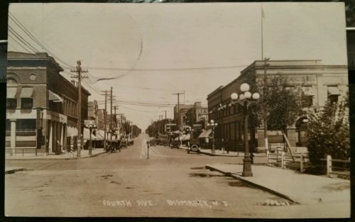 Title (ebay affiliate link): 1920 Bismarck ND 4th Avenue Cars Bank Barber Shop Restaurant & Bar RPPC Postcard
