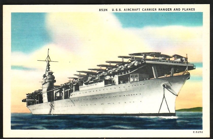 Title (ebay affiliate link): U.S.S. AIRCRAFT CARRIER RANGER AND BI-PLANES ON DECK