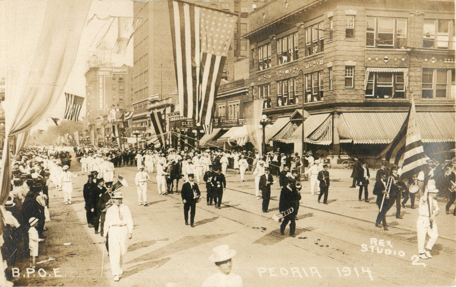 Title (ebay affiliate link): Peoria, Illinois-BPOE Elks Parade 1914 Marching Band Music RPPC Photo Postcard