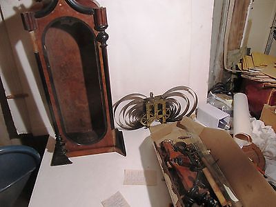 Lot Antique Sessions Clock Movement And Wall Case & Many Parts Gears Finials etc