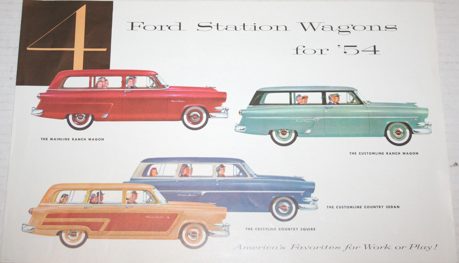 Title (ebay affiliate link): 1954 FORD 4 Station Wagons for '54, Country Squire ORIGINAL sales Brochure