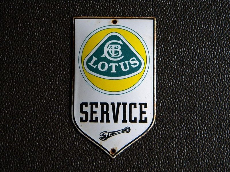 LOTUS SERVICE PORCELAIN METAL SIGN ~6" x 3-1/2" ELISE SEVEN ELEVEN ELITE ELAN S1