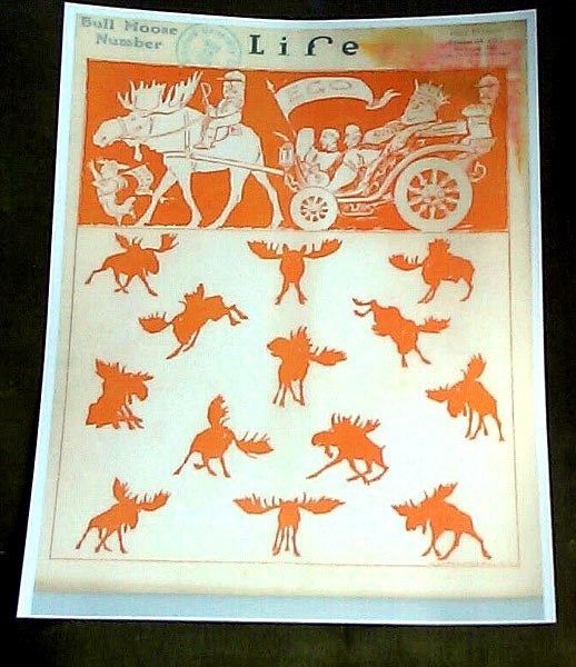 Title (ebay affiliate link): BULL MOOSE PARTY LIFE MAGAZINE COVER REPRINT 1912 PRESIDENT TEDDY ROOSEVELT