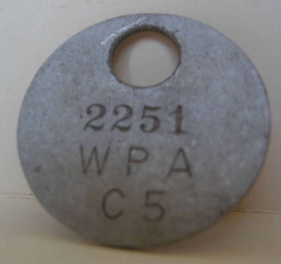 Title (ebay affiliate link): USA Depression. 1930's Roosevelt Era. FDR. New Deal. WPA Tool Check Tag. SCARCE