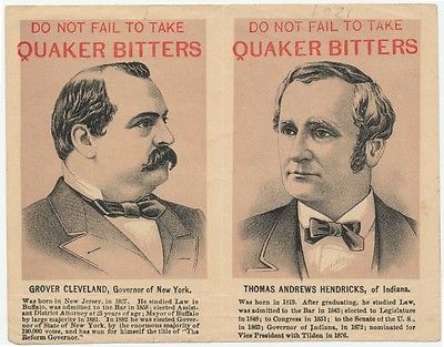 Title (ebay affiliate link): Cleveland vs Blaine Campaign Ad Quaker Bitters Presidential election of 1884