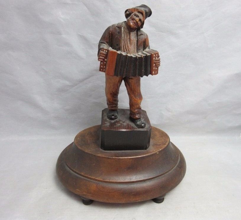 Title (ebay affiliate link): Vtg hand carved wood whittled musical accordion man figurine. Germany. 2 songs