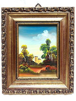 VINTAGE ITALIAN LANDSCAPE MINIATURE OIL PAINTING ANTIQUE GOLD GILT WOOD FRAME