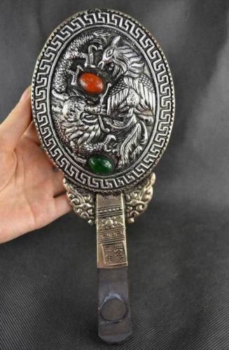 Title (ebay affiliate link): Collectible old Handwork Tibet Silver Carving Dragon Phoenix Big Hand Mirror