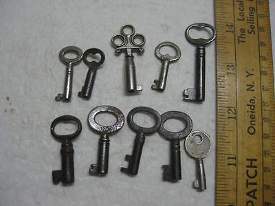 10 SMALL ANTIQUE VINTAGE HOLLOW BARREL FURNITURE CABINET SKELETON KEYS
