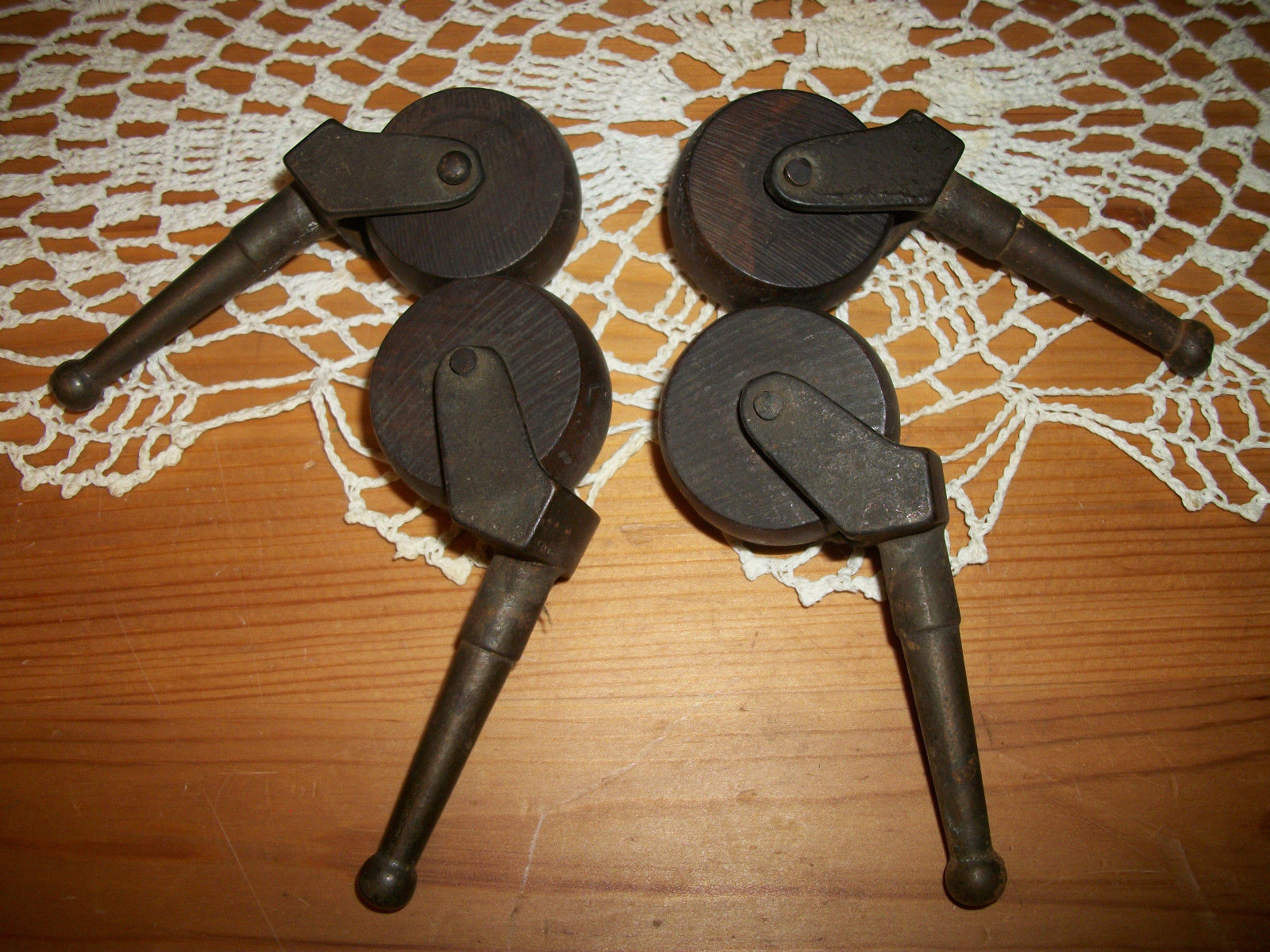 Set of 4 Vintage Wooden Furniture Wheels,Casters,Rollers , Wood & Metal