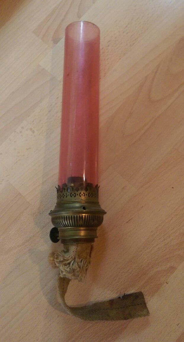 Title (ebay affiliate link): Vintage Pink Glass Oil Lamp Chimney + Brass Wick Attachment