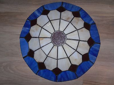 VINTAGE TIFFANY STYLE BLUE TONE HANGING UPLIGHT STAIN GLASS LAMP SHADE
