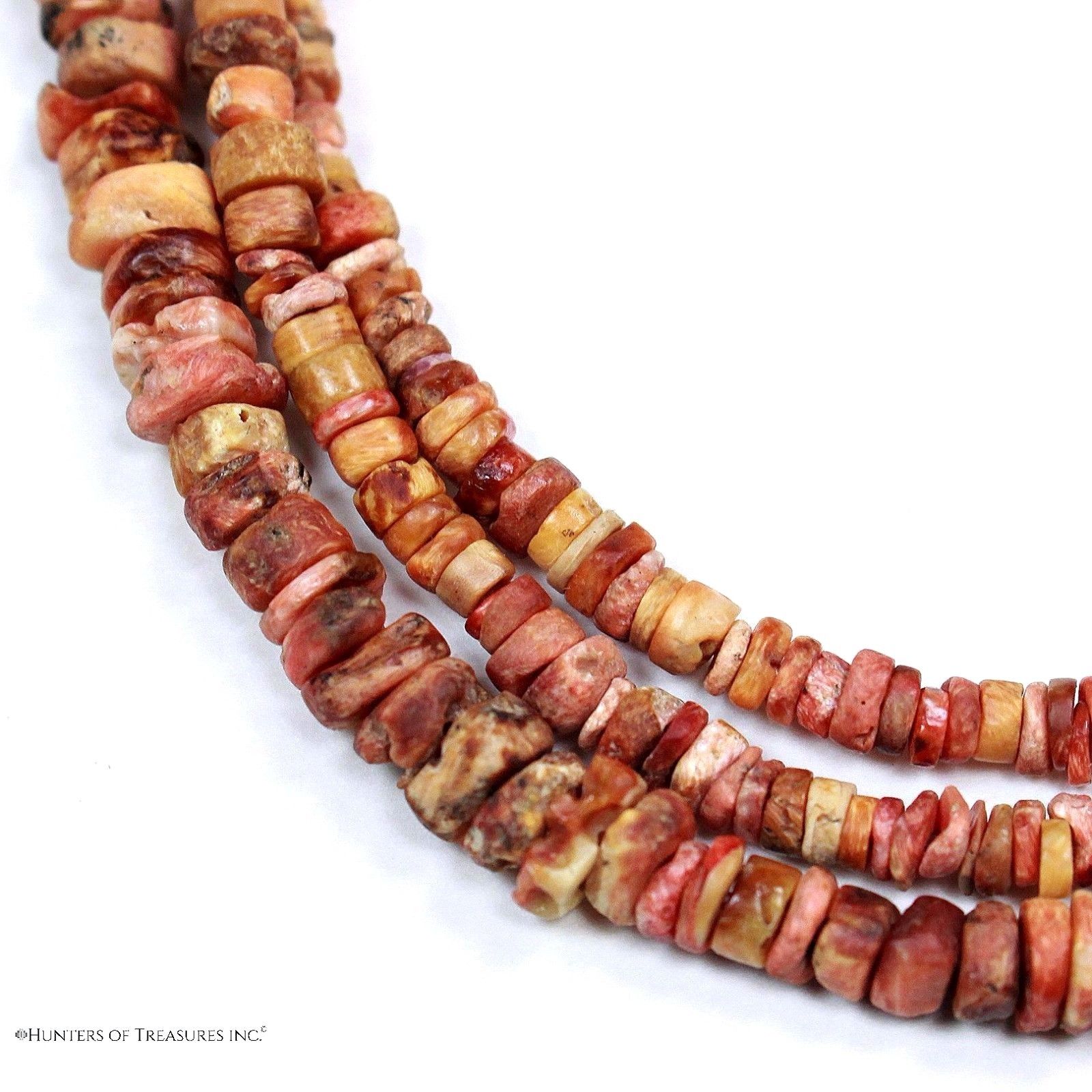11) Strand of Ancient Pre Columbian Orange Spondyllus Shell Beads Artifact 23"