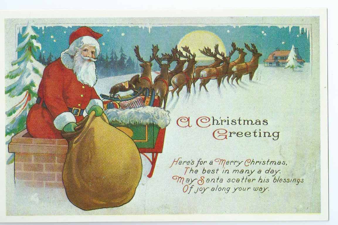 Christmas - Santa, Sled, Reindeer, Poem Postcard